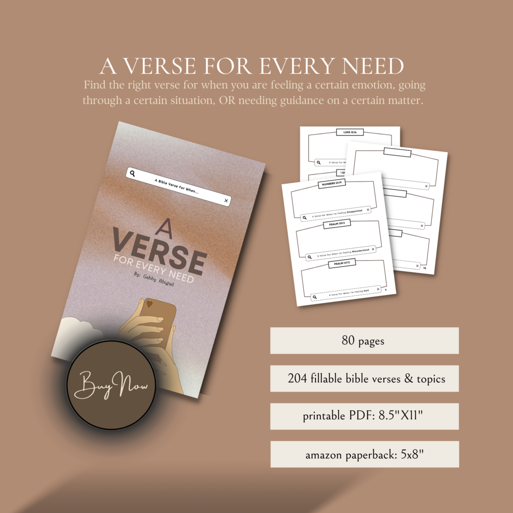Face every emotion, situation, and question you may have along the journey with the Word of God. A Verse For Every Need includes over 200 topics (and verses) related to topics such as: