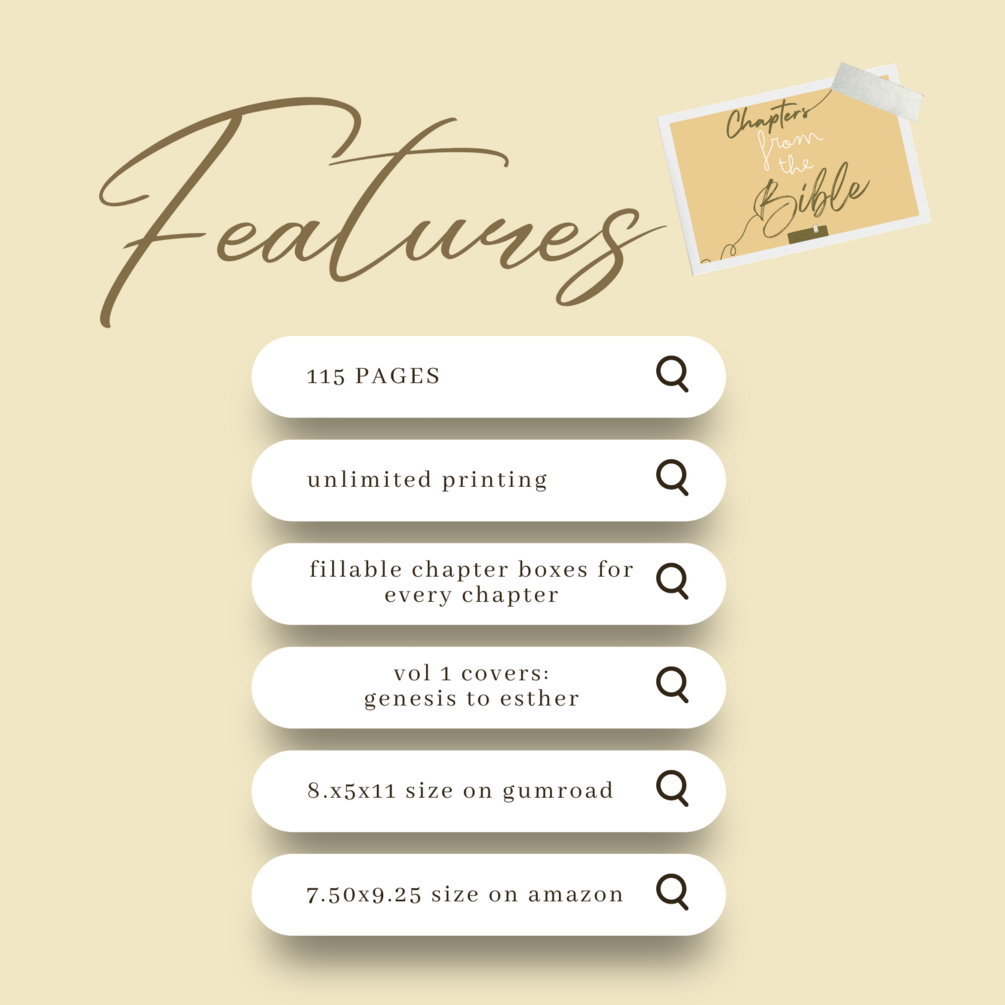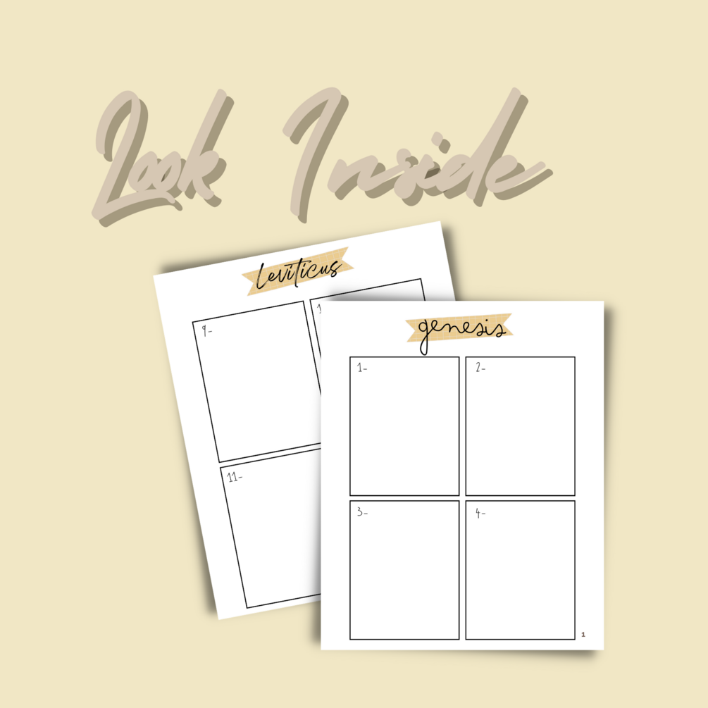 115 pages to read & study every chapter from Genesis to Esther with intention and creativity by filling in each chapter box to your liking with words, illustrations, elements, cut outs, you name it