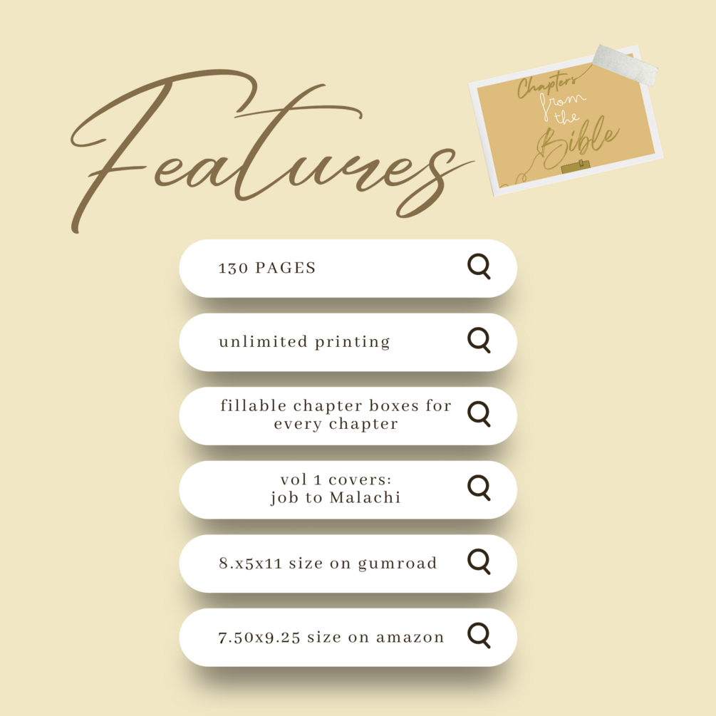 130 pages to read & study every chapter from Job to Malachi with intention and creativity by filling in each chapter box to your liking with words, illustrations, elements, cut outs, you name it