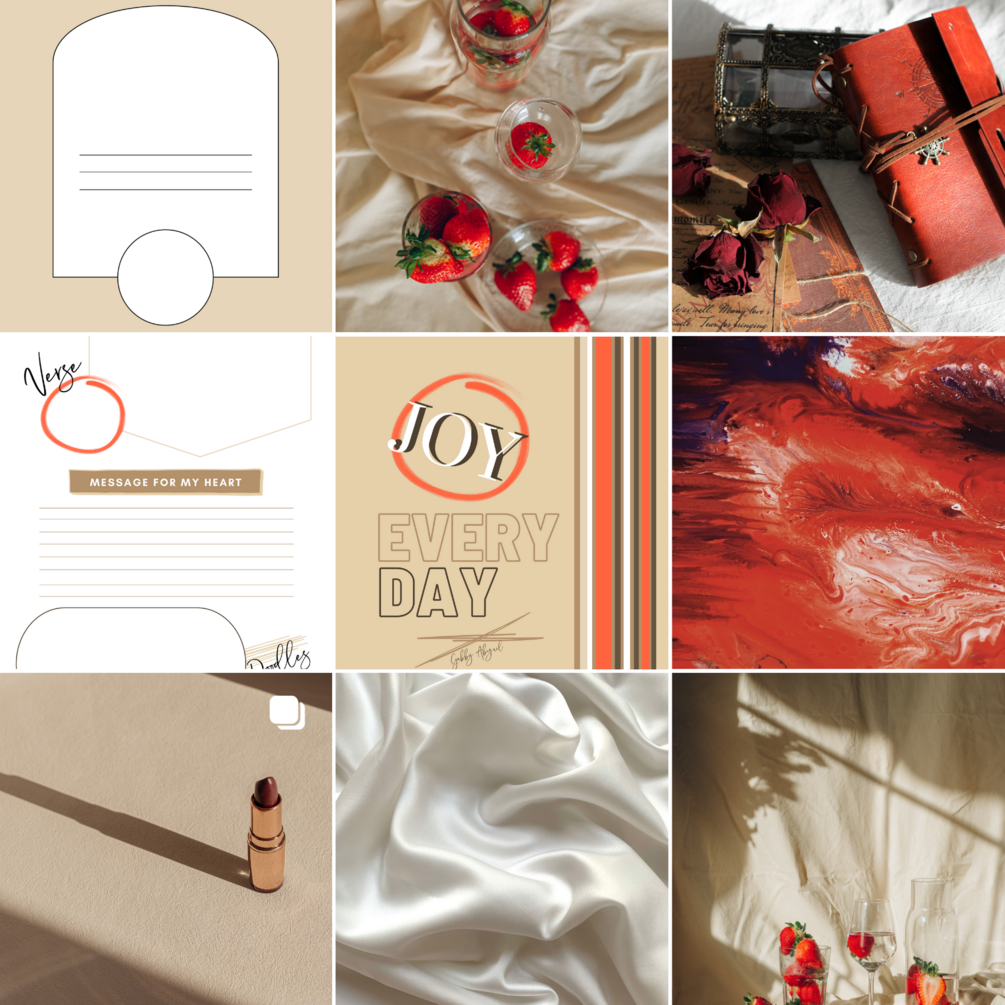 - Neutral & red tones