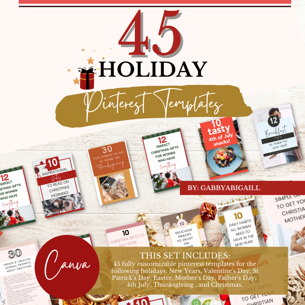 So, if you're ready to style up your Pinterest account, save time creating pins, and boost your traffic during the holidays, grab these 45 holiday Pinterest templates now!