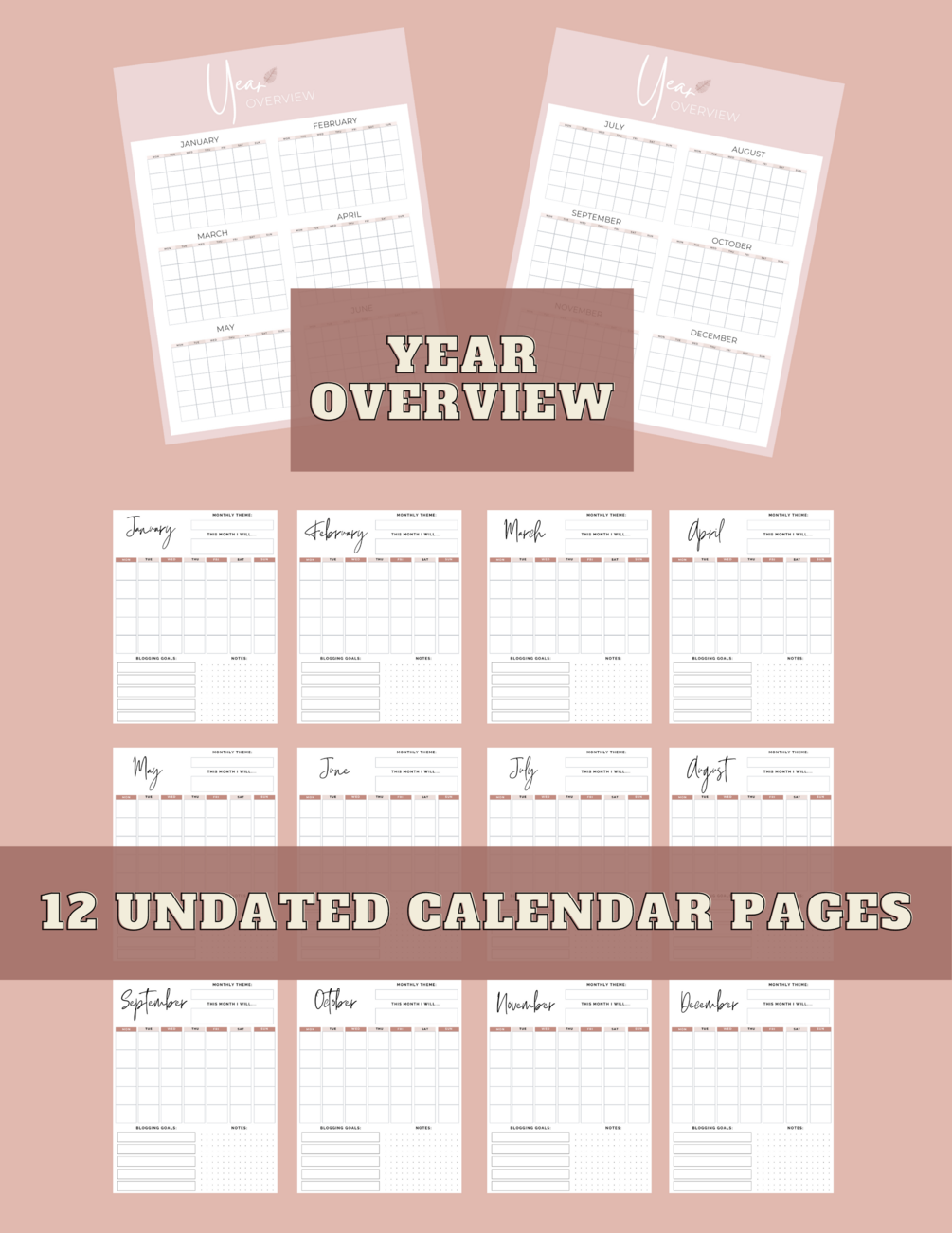 - 12 Undated Calendar Pages