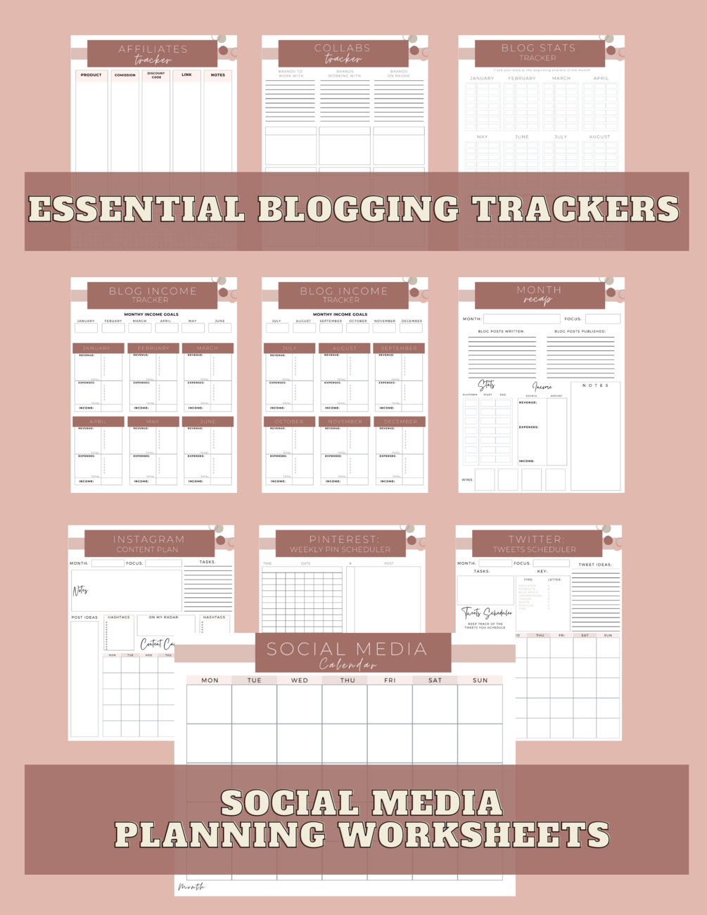 Printable productive blogger planner: 12 undated calendar sheets and 40+ helpful blog planning worksheets!
