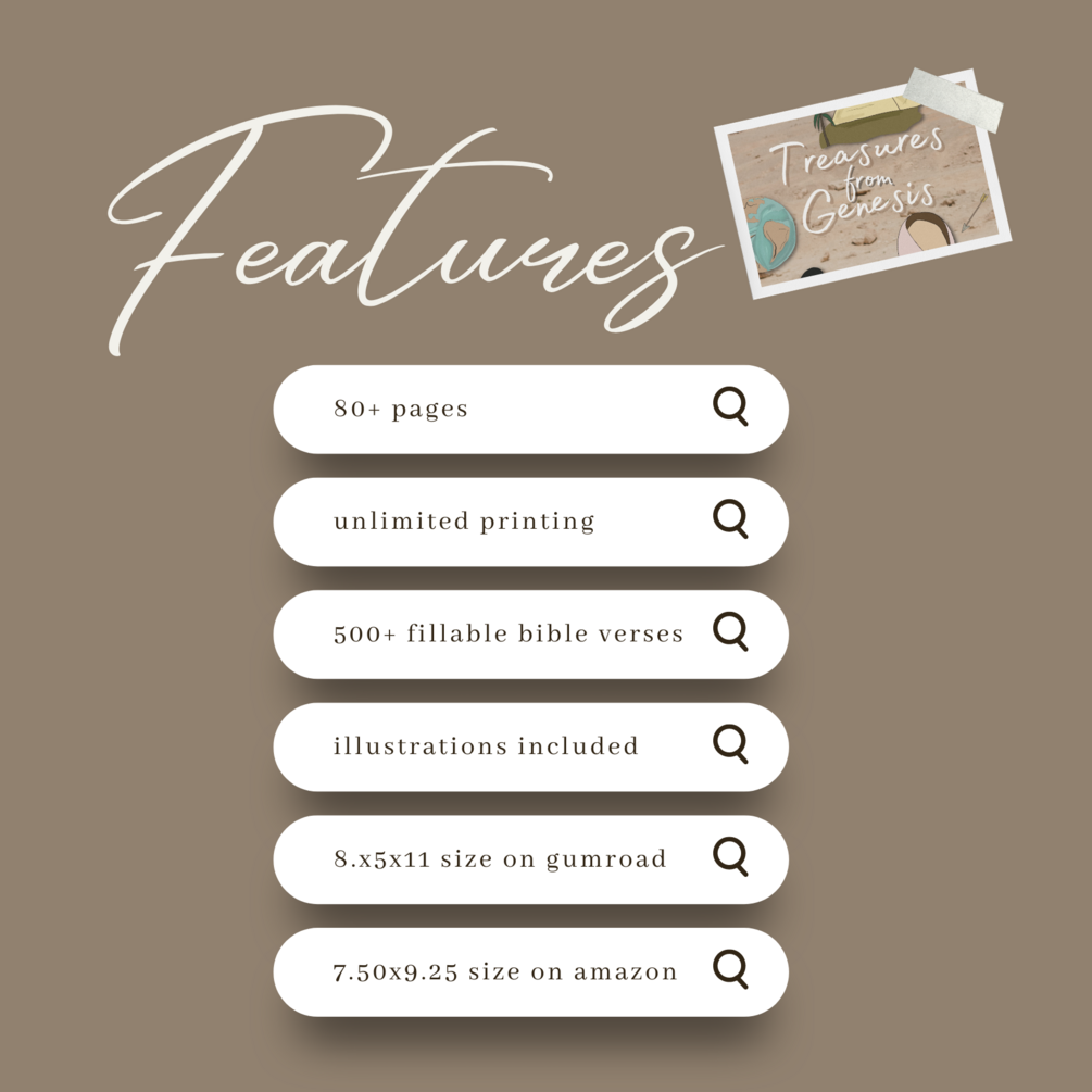 Treasures From Genesis will take you from the start of creation to the many stories of redemption and love in the book of Genesis, protagonized by characters such as Noah, Abraham, Isaac, Jacob, and Joseph. Dive deep into the creation of all things, the fall of men, the plan of God, the never-ending love demonstrated by God in every story, the victory promised, and so much more! Discover the very best of Genesis, digest every portion creatively and intentionally, and store each bible verse in your heart and on this book forever. Whether or not this is your first time reading the book of Genesis, let this be the first time that you pour out your entire heart to understand, receive, and treasure the book of Genesis in the next 80+ pages.