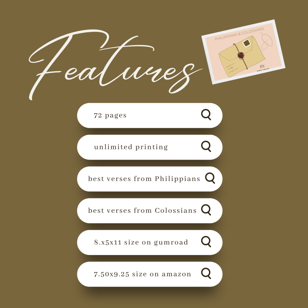 Discover and fill in the 110+ best bible verses from Philippians and Colossians - 72 pages of treasures