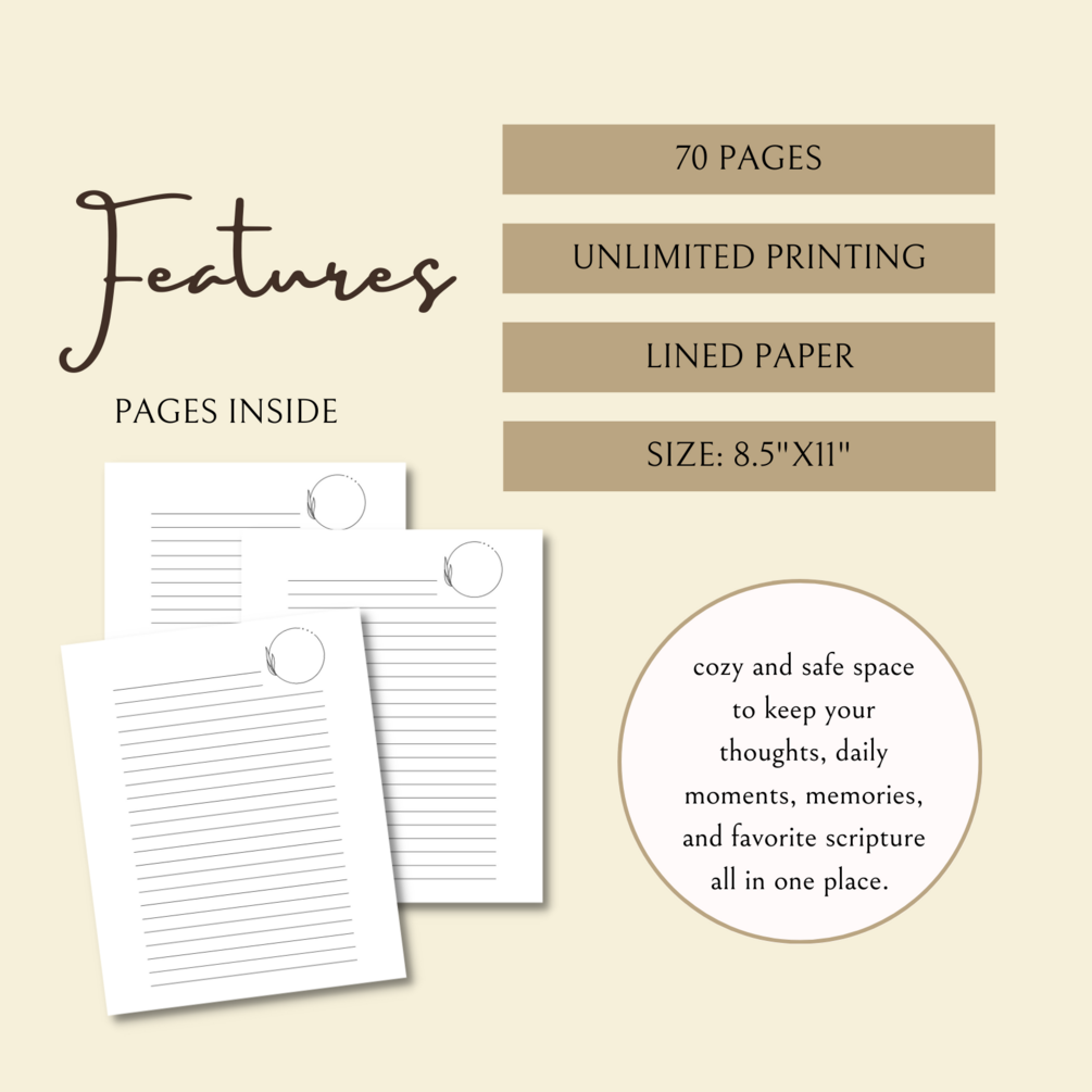 Wait Patiently Christian Printable Journal - 70 page lined journal to keep your thoughts, daily moments, memories, and favorite scripture all in one place.